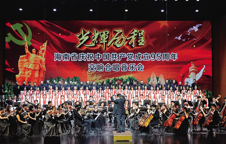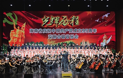 95年的光辉历程,95年的沧桑巨变。海南的可喜发展,海南百姓的幸福生活,让大家实实在在体会到了《没有共产党就没有新中国》。在最后的大合唱中,台上的演员和台下的观众,用歌声和掌声融成了一片热烈的海洋。