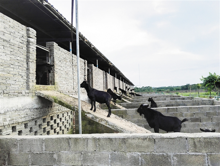 一排排整齐的羊舍已颇具规模,数百只肥硕健壮的黑山羊正蹦跳嬉闹,草地上几百只鸡、鸭、鹅正四处觅食,好一派田园风光。