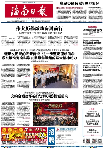 第002版:纪念中国共产党成立95周年暨中共琼崖地方组织成立90周年