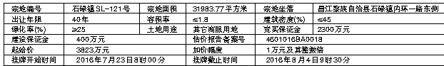 经昌江黎族自治县人民政府批准,昌江黎族自治县国土资源局决定以挂牌方式出让位于昌江黎族自治县石碌镇内环一路东侧,地块编号为石碌镇SL-121号国有建设用地使用权。现将有关事项公告如下: