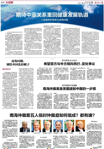 希望菲方与中方相向而行,妥处争议