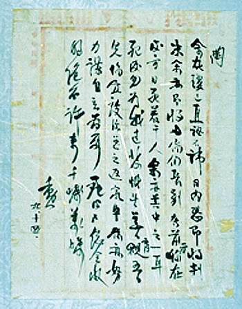 余在琼已直认不讳,日内恐即将判决;余亦即将与你们长别。在前方,在后方,日死若干人,余亦其中之一耳。死后勿为我过悲。惟望善育吾儿,你宜设法送之返家中,你亦努力谋自立为要。死后尸总会收的,绝不许来,千嘱万嘱。