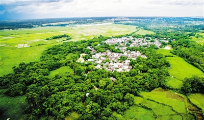 七里村的景,山清水秀,时伴炊烟袅袅。村边小河的一岸是平坦的水稻田,另一岸则是村民的房屋,河水由东向西,汇入北门江,长在河水里的玉蕊林如同一条绿带,绕笼保护着村庄。“水盏是晚上开的,晚上这里又香又漂亮。”村民何汉光的家就在林子边上,刚收的水稻晒在家门口,坐到树底下,看一眼黄灿灿的谷子,再看一眼翠绿绿的林子,便开始和左邻右舍聊天说地。