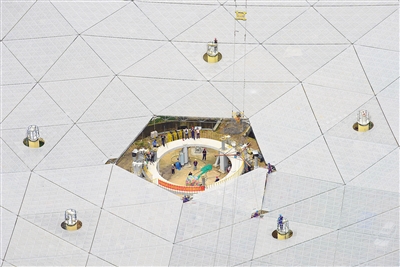 “在这里,再高的吊车也望尘莫及、再长的臂手也鞭长莫及!”回顾建设历程,国家天文台500米口径球面射电望远镜工程总工艺师王启明对记者说,射电望远镜的建设施工量比不上机场或高铁站,但极其特殊的地形条件却带来巨大的施工难度,高度、跨度、坡度、斜度让常规机械设备在这里显得无能为力、一筹莫展。