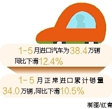 中国进口汽车市场统计数据显示,2016年1-5月进口汽车为38.4万辆,同比下滑12.4%;5月单月进口汽车7.50万辆,同比下滑14.9%,降幅有所加大。2016年1-5月正常进口累计销量34.0万辆,同比下滑10.5%;5月单月销售656万辆,同比下滑13.4%。