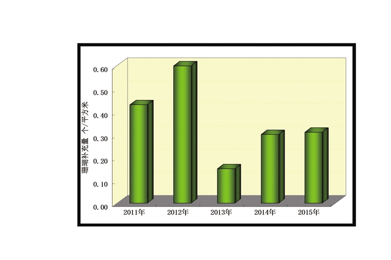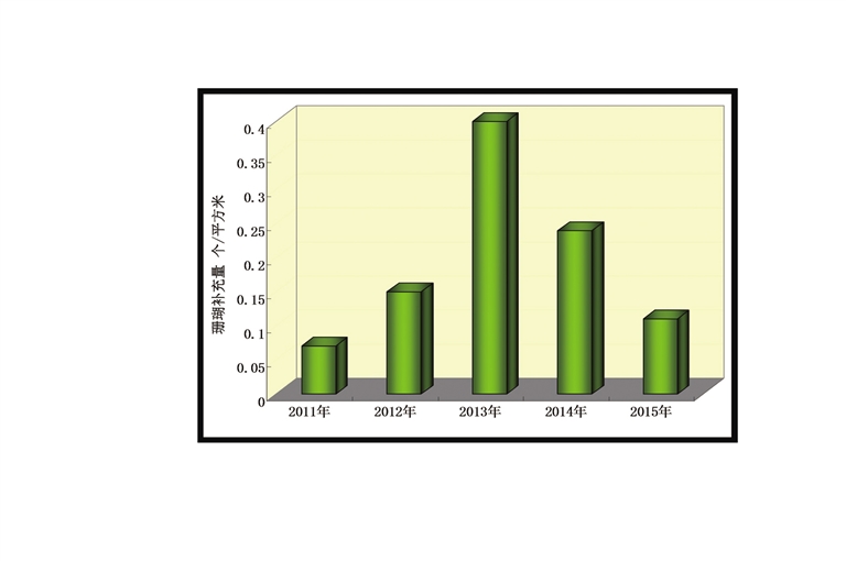 2011年~2015年西沙海域造礁石珊瑚补充量