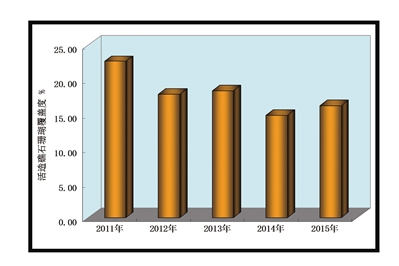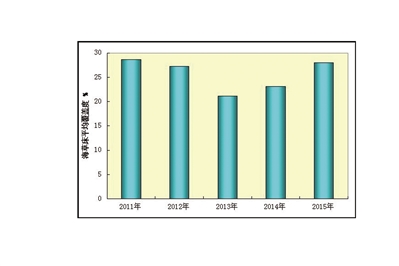 2011年~2015年西沙群岛监测海域的珊瑚覆盖度呈起伏状态,2013年较高。