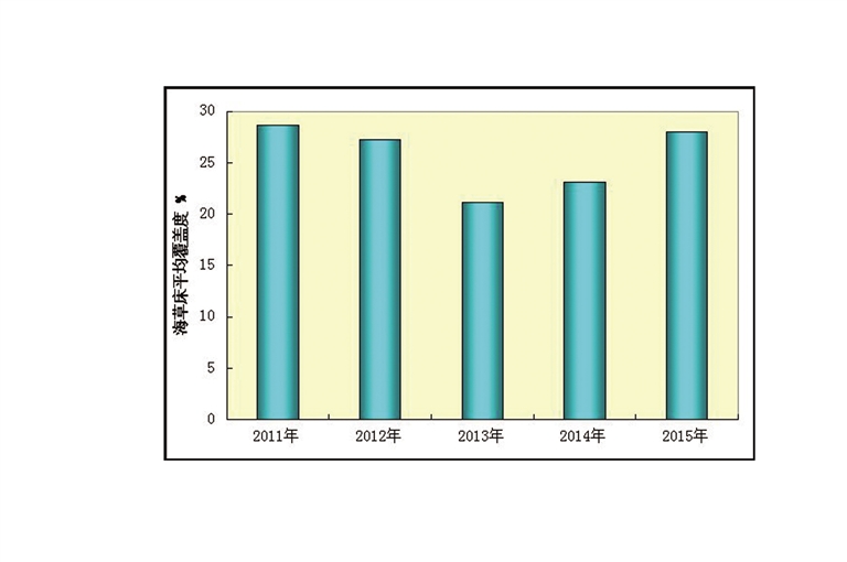 2011年~2015年的监测结果表明,2011年~2013年海草床盖度呈下降趋势,2014年、2015年海草床盖度呈上升趋势。