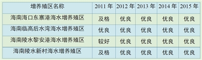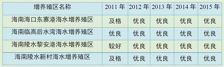 2015年,我省对海口东寨港、临高后水湾、陵水黎安港和陵水新村等4个海水增养殖区开展了环境质量综合监测。结果表明,实施监测的海水增养殖区环境质量满足养殖功能要求,综合环境质量等级为优良。