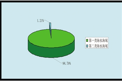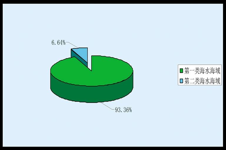 春季,12个重点监测海域中第一类海水海域面积占总监测面积的93.36%;第二类海水海域面积占总监测面积的6.64%。夏季,12个重点监测海域中第一类海水海域面积占总监测面积的98.79%;第二类海水海域面积占总监测面积的1.21%。