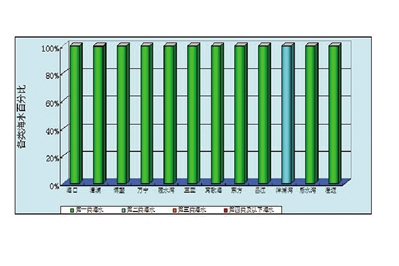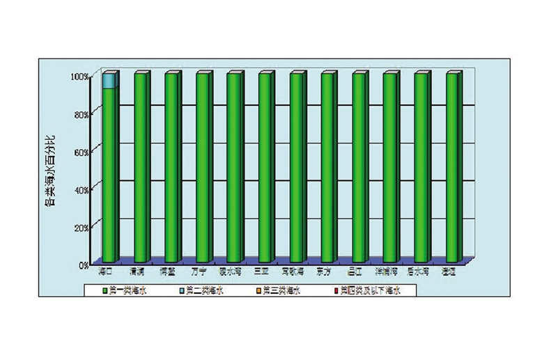 海口湾海域 春季,监测海域均为第一类海水海域。夏季,监测到第一类海水海域面积约占监测总面积的92.23%,第二类海水海域面积约占监测总面积的7.77%(以上监测海域未含海口湾排污口邻近海域)。