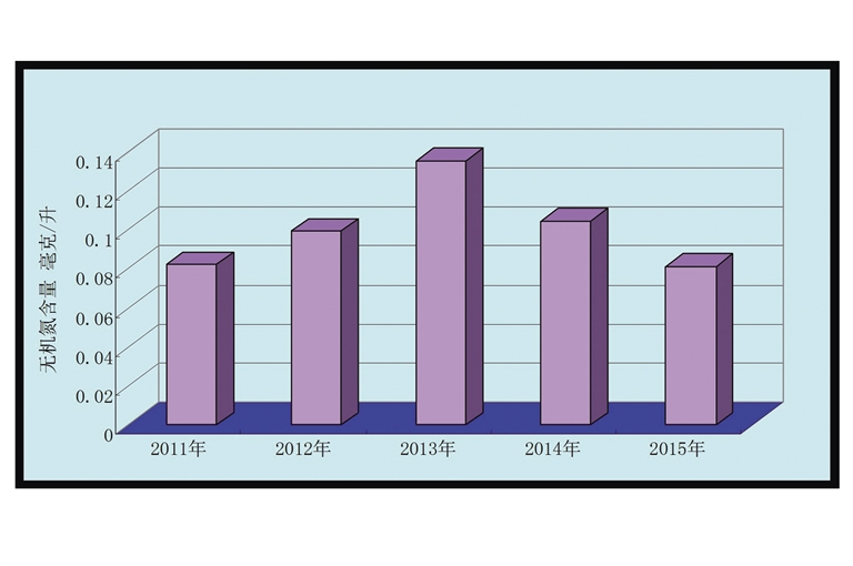 2011年~2015年,海南岛重点海域中无机氮平均含量呈上升后下降的趋势。