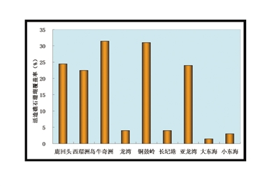 2015年,我省对海口湾、三亚海域、文昌清澜湾、陵水湾、洋浦湾、东方海域、万宁海域、临高后水湾、澄迈马村、昌江昌化江口、琼海博鳌、乐东莺歌海等12个重点海域进行了海洋沉积物质量状况的监测。结果表明,海南岛各重点海域海洋沉积物质量状况总体良好,所有站位的总汞、砷、锌、镉、铅、铜、铬、有机碳、石油类、滴滴涕、多氯联苯含量均符合第一类海洋沉积物质量标准,仅三亚湾海域个别站位硫化物的含量超过第三类海洋沉积物质量标准,其中硫化物符合第一类海洋沉积物质量标准的站位比例达97.4%。2015年海南岛大部分海域海洋沉积物质量状况与历年海洋沉积物监测结果相比保持良好。