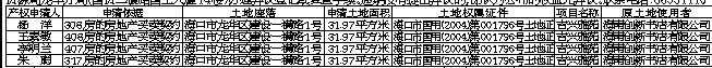 根据海南省人大常委会《关于加快积压房地产产权确认工作的决定》,现将海口市国土资源局对下述积压房地产土地确权登记申请的审核情况予以公布(详见下表)。对公布的土地使用权、所有权及他项权利有异议者,请于通告之日起60日内,以书面形式并持有关证据到海口市国土资源局龙华分局(国贸二横路国土大厦14楼)办理异议登记或复查手续。逾期没有提出异议的,即认为公布的权益无异议。联系电话:68531110
