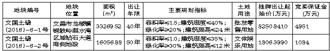 四、竞买咨询及报名期限:本次挂牌出让宗地的详细资料和具体要求,详见挂牌出让手册。申请人可于2016年7月15日至2016年8月8日到文昌市国土资源局三楼土地利用室或海南省政务服务中心二楼省公共资源交易中心22号窗口(土地产权交易)购取挂牌出让手册,该出让手册所载内容为本公告的组成部分。