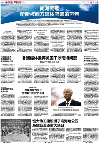 非洲媒体批评美国干涉南海问题