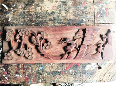 根据画的大样,梁安经又选取了同样面积的木板,将大样上的画面刻成浮雕。“要说难,并不难,但是需要耐心。就这样的一幅《百鸟图》,需要潜心三个月才能完成。”梁安经坦言,自己喜欢雕刻的原因,也正是这份工作所带给他的心无旁骛和静谧舒适,“那一刻,我只沉浸在自己思考的世界里,外面的事再闹、再杂都和我没有关系了。”