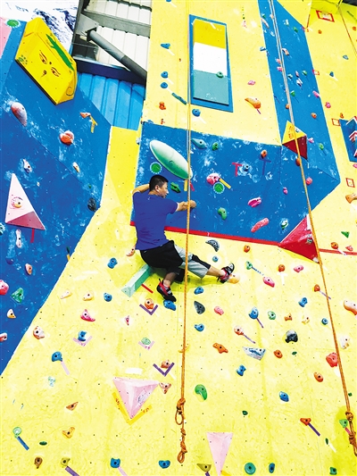 “另外,对于攀岩初学者来说,无法全身心信任地面上的保护员,可能也是影响其继续向上攀登的原因之一。”“海鸥”说,因为有些初学者可能与地面保护员建立信任关系的时间比较短,当他们攀爬到一定高度时往下看,感受到所处位置带来的不安和恐惧后,会担心害怕如果自己突然失手下坠了,下面的保护员是否会注意到,是否能拉得住自己,保护自己不受伤。“一想到这些,初学者的心理压力会很大,有可能就没法再向上攀登了。所以对于地面保护员来说,全神贯注、集中注意力关注运动者的一举一动很重要;而对于运动者来说,要信任地面保护员,全身心投入到攀岩运动中,这点也很重要。”说起关于攀岩的技巧,“海鸥”总是有点滔滔不绝。