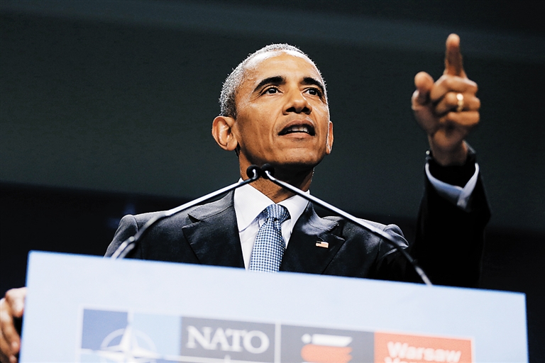 美国总统奥巴马9日在北约华沙峰会结束后举行的新闻发布会上称,美国不会改变对欧洲的安全承诺。 新华社/路透