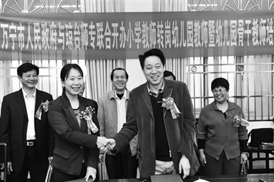 2011年,学校整合多方资源成立“幼儿师范学院”,打造我省幼儿师资专业化发展培养和培训的摇篮,提供幼儿园教师职前培养与职后培训一体化教育服务。学校逐步建立起小学幼儿师资国家级培训、省级培训和校级培训三级培训体系,调研开发了小学幼儿园骨干教师培训、小学幼儿园教师脱产置换研修培训等22种类型培训项目,覆盖小学幼儿教育所有工作领域,培训小学和幼儿园教师5万余人次,为海南基础教育领域培养了一批又一批“种子”教师。海南省委相关领导在观看了琼台学前教育专业手工制作展示后,强调琼台要克服一切困难,继续做好我省乃至全国幼儿教育的人才培养和服务,做大做强学前教育。