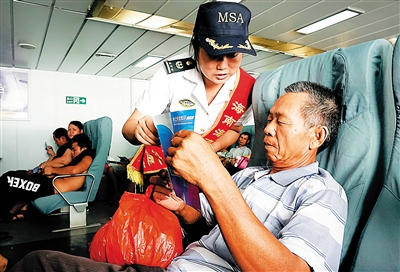 今天是第12个中国航海日,海南各大港口彩旗飘扬、汽笛长鸣,航海人以自己特有的方式庆祝该节日。围绕“建安全高效绿色航运 助海上丝路创新发展”的航海日主题,海南海事局派出志愿者在海口港客运站向社会公众传播海洋、航运文化和水上交通安全知识。据了解,海南各海事机构同步开展了相关活动。