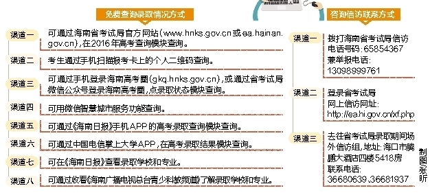 为深入实施招生“阳光工程”,给广大考生提供更方便、快捷的信息服务,省考试局为广大考生提供了8种渠道免费查询录取情况,并给出了3种信访联系方式接受家长及考生的咨询投诉。省考试局还特别提醒,由于招生录取过程录取审查工作人员可能与考生联系,请考生务必保证电话畅通。