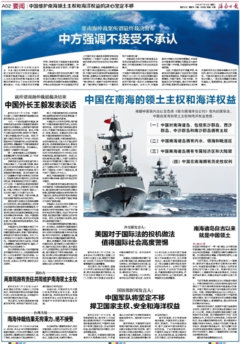 海南日报 要闻中国维护南海领土主权和海洋权益的决心坚定不移 002 2016-07-131 2016年07月13日 星期三