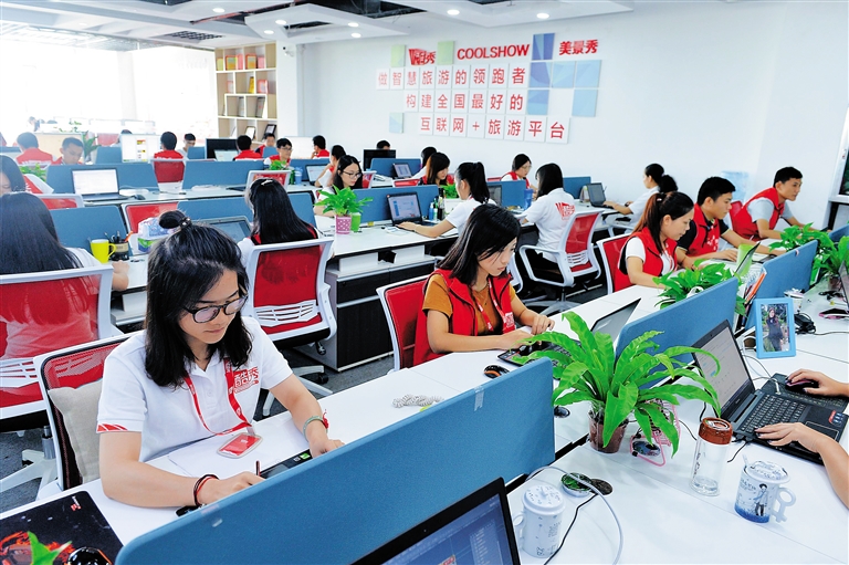 7月11日,海南酷秀投资控股有限公司工作人员正在忙着处理旅游、票务订单。进入暑期,公司的业务量明显增长。 本报记者 王凯 摄