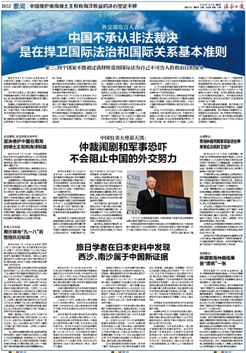 海南日报 要闻中国维护南海领土主权和海洋权益的决心坚定不移 014 2016-07-141 2016年07月14日 星期四