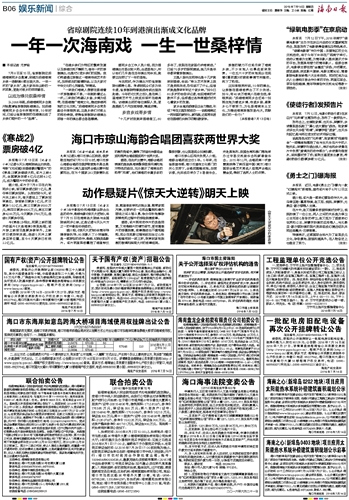海南日报 娱乐新闻综合 018 2016-07-141 2016年07月14日 星期四
