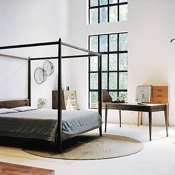 轻中式偏向于浅木色家具,低调质朴。椅背不高,放上几个手工枕头,让人能以最舒适的状态聊天或休息。阳光透过白色的窗帘投射到屋内,最适合和朋友围坐低矮的茶几旁,细啜慢饮,谈天说地。