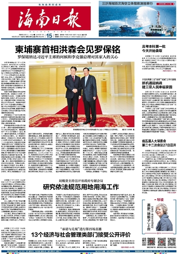 海南日报 头版 001 2016-07-151 2016年07月15日 星期五