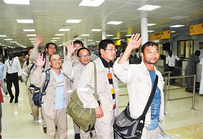 7月14日,从南苏丹首都朱巴撤离的中石油员工抵达苏丹喀土穆国际机场。 当天下午,搭载93人的2架包机先后从朱巴国际机场起飞,顺利抵达喀土穆。此次撤离人员来自中国石油天然气集团公司旗下的中国石油工程建设公司,他们都是在南苏丹一油区负责石油天然气设备安装调试的中方工程技术人员。 目前从南苏丹乘包机抵达喀土穆的中方人员达到164人,其中除少部分人员在苏丹待命休整外,绝大部分将陆续安排回国。新华社发