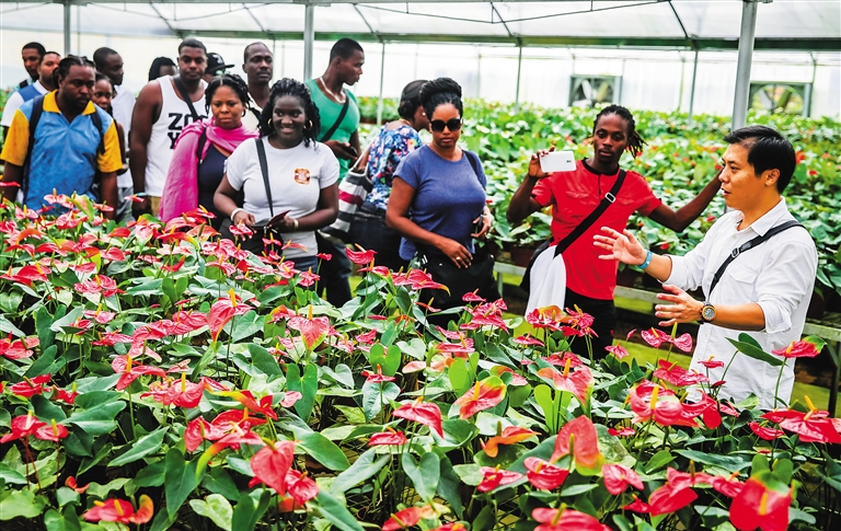 7月15日,在中国热带农业科学院儋州花卉中心基地,热科院专家为来自格林纳达农业部、教育部、大学和农场等10多个单位的20名学员授课。据介绍,2016年格林纳达热带果蔬种植技术培训班由商务部主办、中国热带农业科学院承办。培训内容涉及香蕉、芒果、菠萝、西瓜、辣椒等热带果蔬的选育种、高产栽培、病虫害防治等技术。
