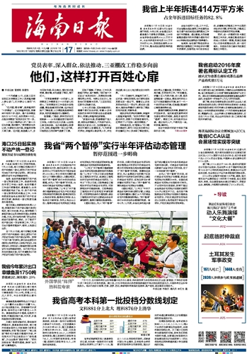海南日报 头版 001 2016-07-171 2016年07月17日 星期日