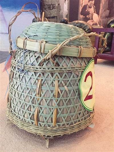 在屯昌县博物馆,一个被摆放规整的容器引起了记者的注意。和不少装饰用的竹编制品不同的是,这个容器呈圆柱形,中间部分比两头突出,头上还设置了一个盖顶,容器上下用竹条反复捆拧在一起制成的竹藤连接,可以背起。整件容器较其它容器相比体积要大不少,能收纳的物品自然也不少。