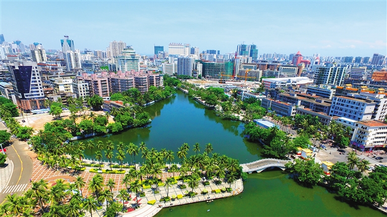 7月17日上午,打通后的海口西湖环湖道路,景观更加迷人。