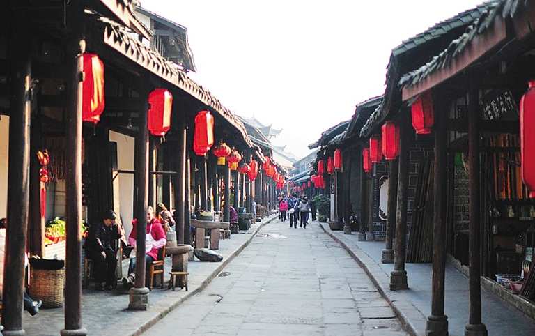 若说黄龙溪的由来,倒也悠久。其旧名原为“赤水”,据《仁寿县志》载:“赤水与锦江汇流,溪水褐,江水清,古人谓之黄龙渡清江,真龙内中藏”。《隶读》著录《黄龙甘露碑》记云“黄龙见武阳事,铸一鼎,象龙形,沉水中……故名曰黄龙溪”。黄龙溪古镇上有古牌坊、古寺庙、古建筑民居与古榕树、古崖墓,古色古香,与现代大都市形成鲜明的对比。