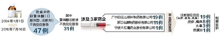 据悉,2015年1月1日至2016年7月13日,广州白云山明兴制药有限公司生产的黄体酮(批号:150909、160111、160206),除海南上报的病例外,其他省没有报告。
