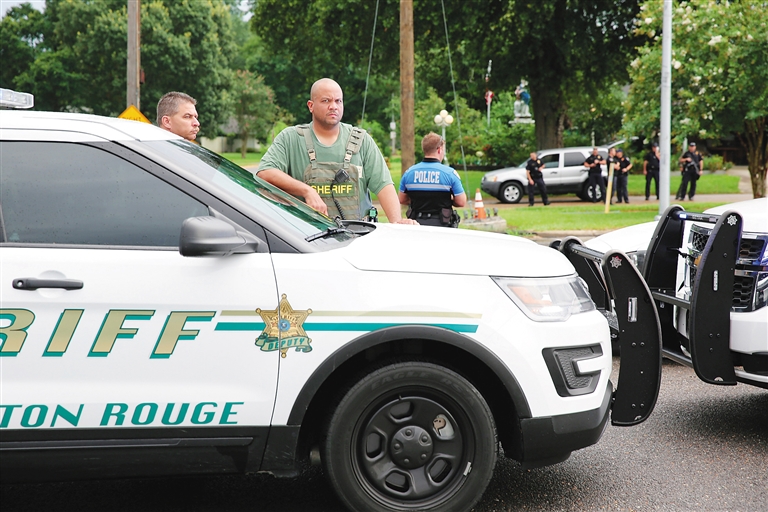 17日当晚,记者驱车抵达巴吞鲁日市,通向现场的所有交通路口均被严密封锁,警车上警灯闪耀,警察荷枪实弹。媒体无法踏入事发加油站,警方和美国联邦调查局人员在加油站附近搜集证据。