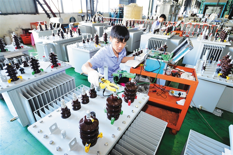 受市场需求和企业技术革新等因素影响,5月份海口机电制造业出现大幅增长,其中电气和电子行业表现强劲,累计产值同比分别增长20.9%和37.5%。机电制造业12家重点企业5月份单月产值达5.2亿元。本报记者 王凯 摄
