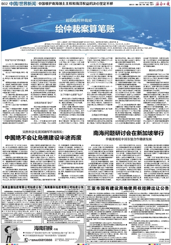 第014版 : 中国/世界新闻中国维护南海领土主权和海洋权益的决心坚定不移