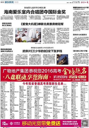 海南日报 娱乐新闻综合 017 2016-07-191 2016年07月19日 星期二