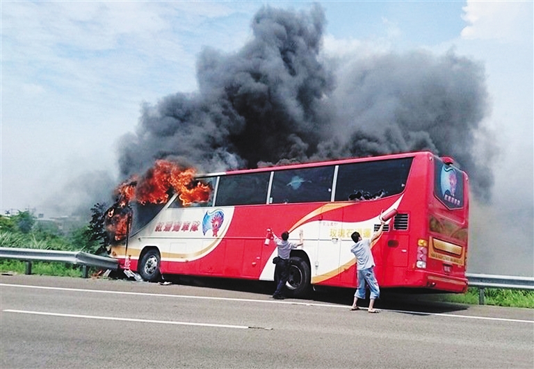 据台媒报道,参加现场救援的台公路警察说,从监视画面看,游览车先冒烟,继而擦撞外侧护栏。车头火势很大,警消人员都无法靠近。控制火势后清理现场时发现,大部分游客在车内第5排座椅后遇难,尤其是后车门处。桃园市政府警察局表示,26具遗体已送往中坜殡仪馆。