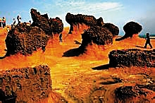 罕见的海岸石林(岩石尖塔),像海蚀的月球表面一样,与大理式岩层创造了台湾北部沿海一个超凡脱俗的氛围。野柳地质公园并不是北海岸唯一的岩石明星。爬上石门石拱桥的阶梯,可以欣赏壮观的大海和海岸景色。