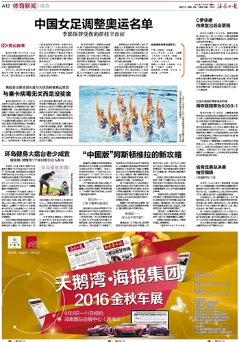 海南日报 体育新闻综合 012 2016-07-201 2016年07月20日 星期三