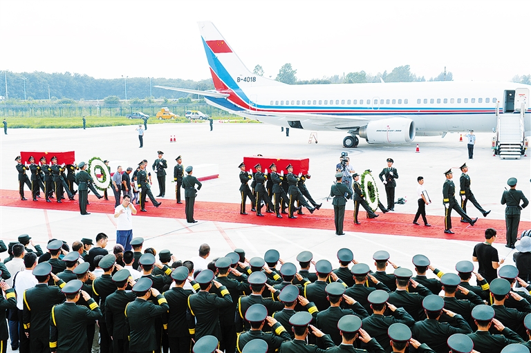 中央军委联合参谋部副参谋长乙晓光、中央军委政治工作部副主任杜恒岩前往迎接,向烈士表示沉痛哀悼,向烈士亲属和受伤的战士表示亲切慰问,向坚守在国际维和一线的全体官兵致以崇高敬意。