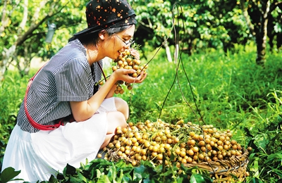 一进黄皮园,游客们就迫不及待地摘下一颗颗黄皮往嘴里送。半个小时后,大家吃够了,还忘不了打包,称量之后带回去。路上,前来采摘的游客络绎不绝,各种车辆摆成了“长龙”。村民符树武兴奋地说:“以前我们村的黄皮太多烂在树上没人要,这两三年的成熟季节,每天都迎来大量游客采摘,高峰期一天最多可进账近万元。”