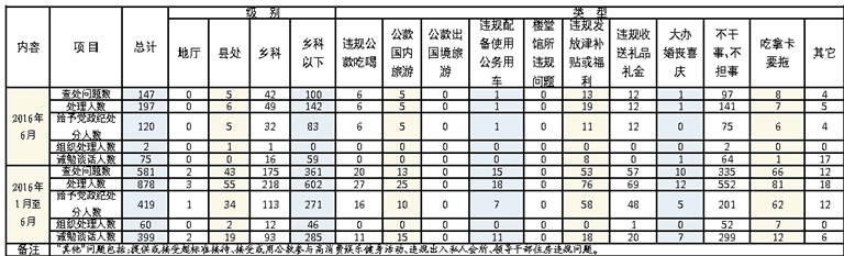 全省查处违反中央八项规定精神问题、反对“四风”和整治庸懒散奢贪情况汇总表