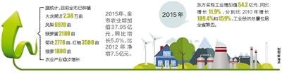 2015年,东方实现工业增加值54.2亿元,增长11.9%,分别比2010年增长189.4%和159%,工业经济总量位居全省第四。